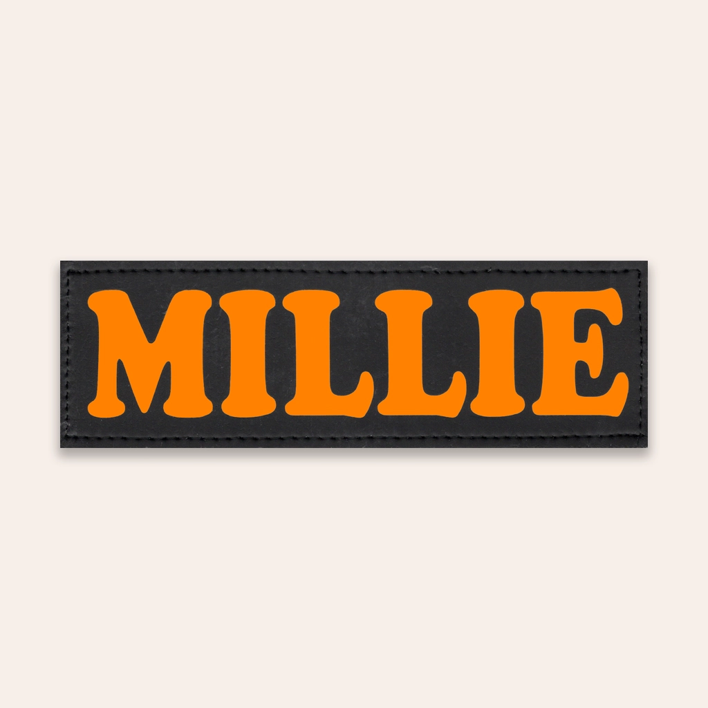 Eén basic label 16 bij 5 is één enkel bedrukt tekstlabel met eigen tekst voor het K9 tuigje van uw hond. Ze zijn geschikt voor diverse hondentuigen van verschillende merken, zolang er plek is met klittenband voor naamlabels – meten is weten om de juiste maat vast te stellen..